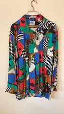 Vintage 90s GS Multi-Color Abstract Animal Tree Print 100% Silk Button Up Shirt