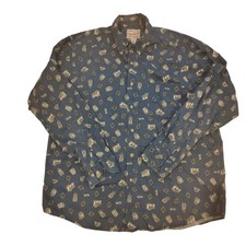 Woolrich Mens XL Blue Cotton Button Down Shirt Novelty Antique Clock Print Peru