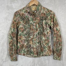 Vtg Miller Western Wear Shirt Womens 34 Ruffle Pioneer 1800s Antique Floral 70s