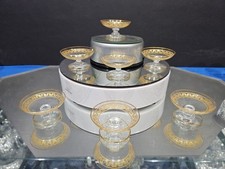 7 Pedestal Salt Dip Bowl Cellar antique glass Gold etch Greek Roman Key st louis