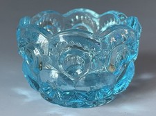 Antique - Vintage '30s LE Smith Moon & Stars Pressed Glass Blue Open Salt Cellar