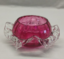 Cranberry Glass Salt Dip Cellar Ruffled Clear Edge Vintage Antique Trinket Bowl