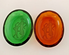 Antique Vintage Czech Faceted Intaglio Glass Open Salt Pair Dancing Woman Child