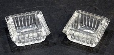 3 Vintage Antique Clear Small Square Glass Open Salt Dip Cellars