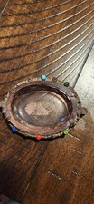 Vintage Salt Trinket Cut Glass With Metal Brass Rim Antique