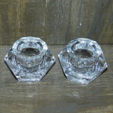 Vintage Antique Clear Glass 2" Hexagon Crystal Salt Dip Cellar Cellars Lot of 2