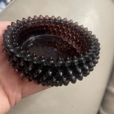 Rare Antique Hobnail Art Glass Black Amethyst Round Master Salt Cellar Excellent