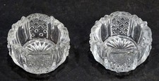 Pair of Vintage SALT CELLAR DIP CONDIMENT Antique PAIR Cut Glass Starburst Bowl