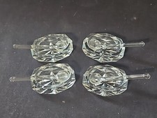 4 Antique Vintage 1950s Crystal Cut Glass Open Salt Cellars With Glass Spoons