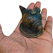 Old Vintage Antique Engraved Work Brass Unique Sea Shell Shankh Shape Ink Pot