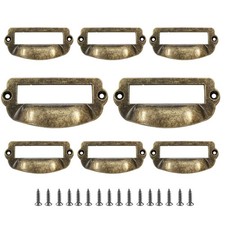 8pcs Antique Bronze Drawer Pulls Label Cabinet Handles Apothecary Bin Style