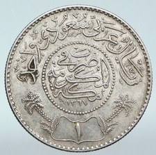 1947 SAUDI ARABIA King Saud Antique Silver OLD Riyal Ornate Arabic Coin i89769