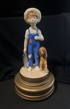 Vintage SCHMID BROS JAPAN Music Box Plays Happy Wanderer Boy with Fish & Dog CAB