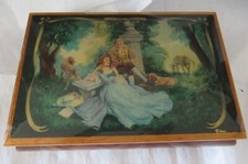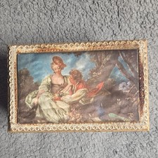 Vintage Music Box with Romantic Scene, Classical Artwork, and Lace Trim