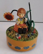 1985 Daisy Daze Girl in White & Green Dress Working Music Box Vintage