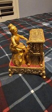 Vintage Mechanical Music Box Victorian Woman Playing Piano Cast Metal Gold Japan