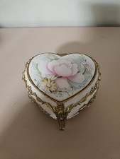 Vintage Bisque Pink & White Rose Cameo Heart Shaped Music Box Otagiri 1995 Video