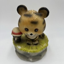 Vtg. Mann Music Box Japan. Tiger W/ Bird In A Hat. “Hold That Tiger”! 5.34” Tall