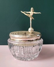 Vintage Reuge Dancing Ballerina Wind-up Music Box ft Cut Crystal & Silver Plate