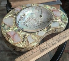Vtg Lucite Abalone Shell Inlay Ashtray Kidney Teardrop MCM Mid Century Atomic