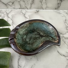 Vintage Ceramic Fish Ashtray Green Brown Glaze Mid Century Modern Home Decor
