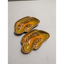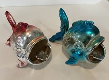 VINTAGE MODERN MID-CENTURY METALIC CERAMIC FISH ASHTRAY SET OF 2 JAPAN RARE L@@K