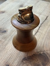 Vintage Brass and Wood Tabletop Lighter Teak Mid Century