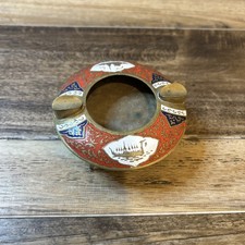 Vintage Mid Century Brass Enamel Tripod Spaceship Ashtray Thailand Temple Design