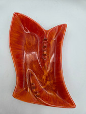 1960's Mid Century Ceramic Ashtray Orange 6.5" Long MCM Funky Shape