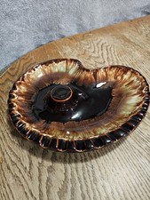 VINTAGE MCM MID CENTURY MODERN CERAMIC GLAZE SPECKLED ASHTRAY BROWN 10.5"x9ā