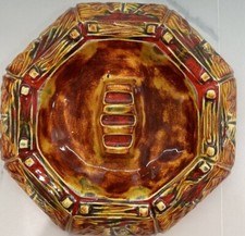 Mid Century Polynesian Design Brown Glaze Art Pottery Geometric Face Ashtray