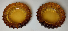 Set of 2 Vtg Blenko Amber Heavy Glass Ashtray 5" Sunburst Mid Century Modern MCM