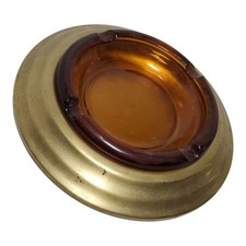 Mid Century Modern Brass Ashtray 8.5" w/ Amber Glass Insert MB 146