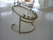 VINTAGE ASHTRAY WHITE GOLD CERAMIC HOLLYWOOD REGENCY 6" MID CENTURY USA