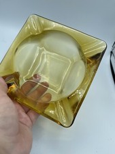 Vintage Mid Century Square Yellow Amber Ashtray Glass MCM 6" tobacciana M/A1