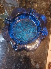 Vintage Cobalt Blue Heavt Glass Ashtray Mid Century Modern M4