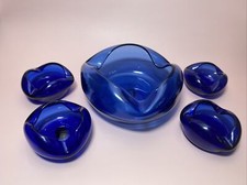 Lot Of 5 Vintage murano Style Blue glass ashtray personal Mid Century Modern C3
