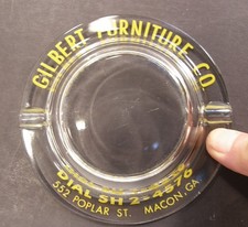 VINTAGE GLASS ADVERTISING ASHTRAY GILBERT FURNITURE CO MACON GEORGIA