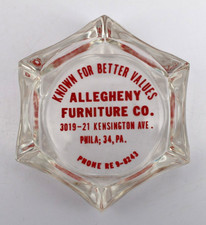 Vintage Marketing Glass Ashtray Allegheny Furniture Co. Philadelphia PA