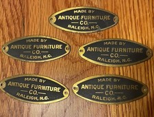 Lot Of 5 Metal Name Plate Tags “Made By Antique Furniture Co. Raleigh, N.C.”