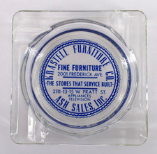 Vintage Marketing Glass Ashtray Krastell Furniture Co Baltimore Maryland MD