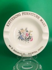 VINTAGE ADVERTISING CERAMIC FLORAL ASHTRAY FOR KETTERING FURNITURE MART 1950'S
