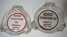 Lot of 2 Antique Boggs Furniture Glass Ash Trays Ardmore Tenn AL 2 Digit Phone