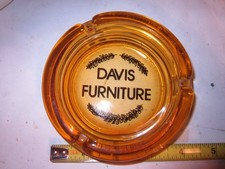 Vintage AMBER Glass Advertising Ashtray DAVIS FURNITURE 4"