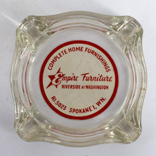 Vintage Glass Advertising Ashtray MCM Empire Furniture Spokane Washington WA