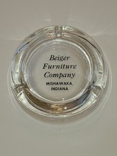 Vintage Marketing Ashtray. Clear Glass. Bieger Furniture Company. Mishawaka IN