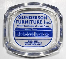 40"s Vintage Glass ADVERTISING Ashtray - GUNDERSON FURNITURE HENDERSONVILLE,NC