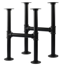 2 Pcs 16 Inch Industrial Table Leg Set, Grey Steel Metal Pipes Vintage Furniture