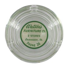Vintage Glass Marketing Ashtray Watson's Furniture Co. Onancock Virginia VA