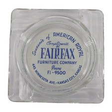 Vintage Glass Marketing Ashtray Fairfax Furniture Company Kansas City Kansas KS